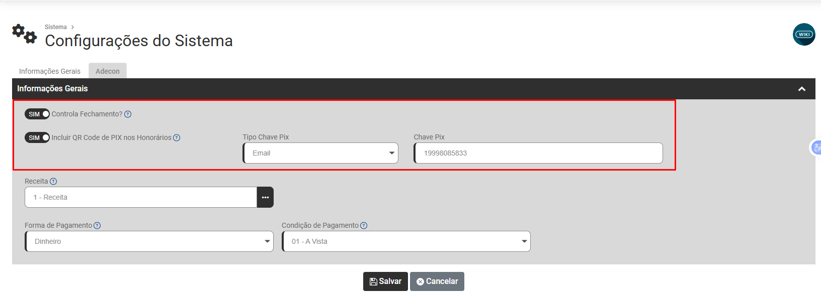 - Incluir QR Code de PIX nos Honorários - Sim ou Não - Se SIM, habilitara para incluir imagem do QR, e irá gerar imagem no recibo de Honorários.