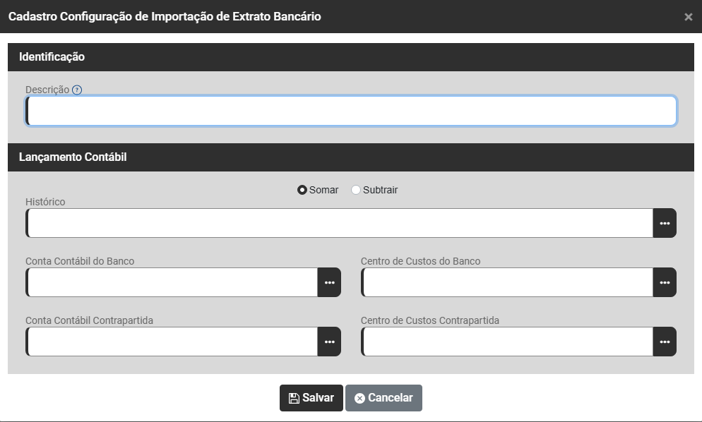 - Descrição - Preencha com a mesma descrição do campo “MEMO” do extrato bancário.