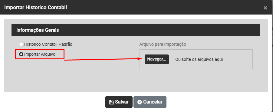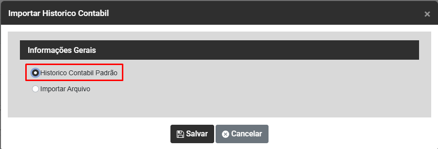 - através da importação do Histórico Contábil Padrão internamente cadastrado no Sistema