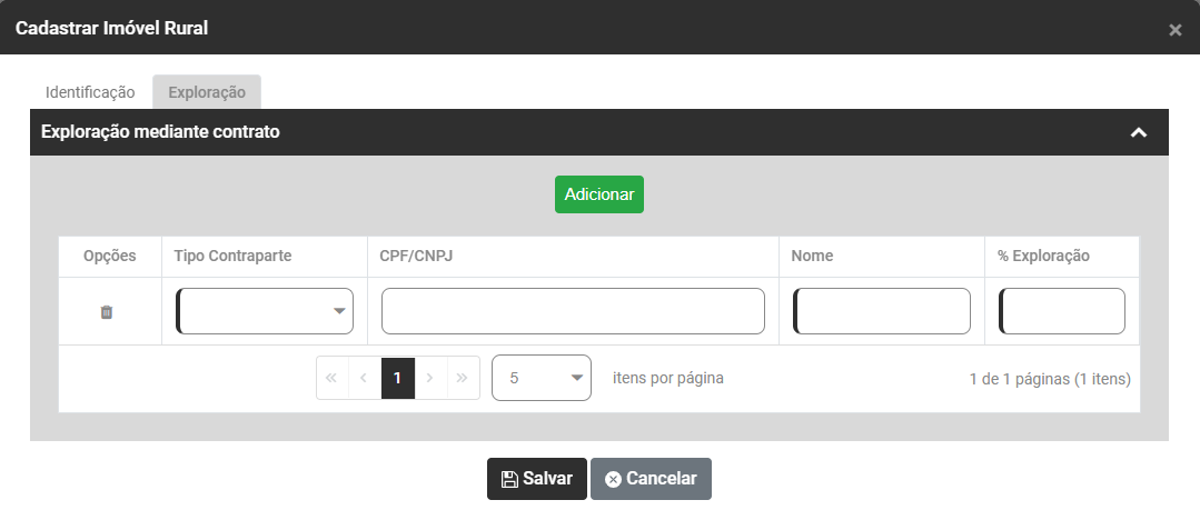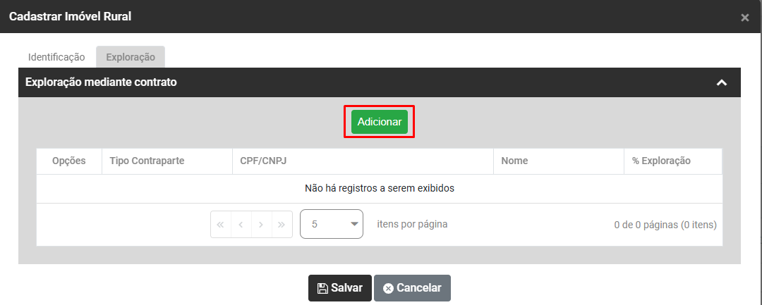 Se você precisar cadastrar a Exploração mediante Contrato, clique no botão Adicionar