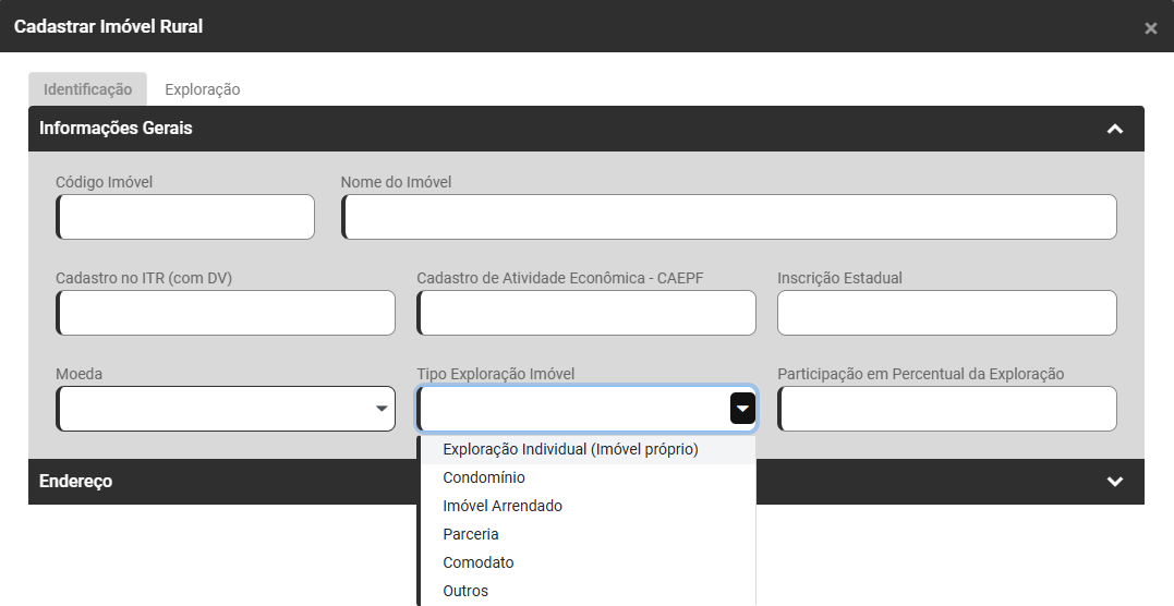 - Tipo de Exploração do Imóvel