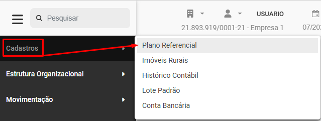 Para Cadastrar o Plano Referencial de sua Empresa, acesse o menu Cadastros>Plano Referencial