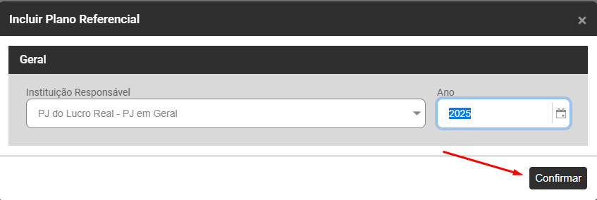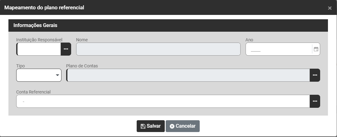 Ao clicar no botão Adicionar da Aba Mapeamento será apresentada a tela para Mapeamento do Plano Referencial, contendo: