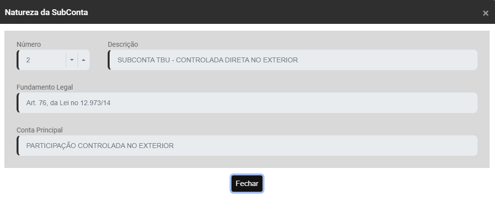 Ao clicar no botão Adicionar o Sistema apresentará a tela para que você defina a Natureza da SubConta