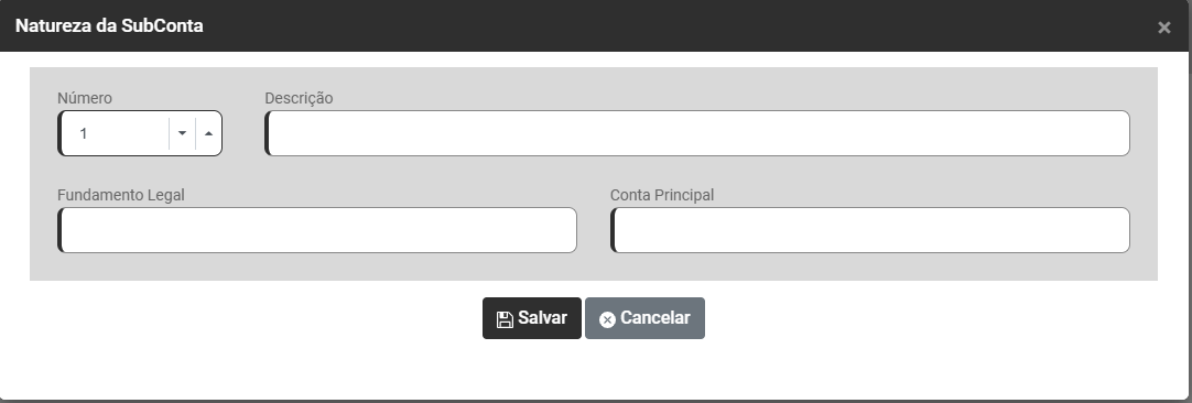 Ao clicar no botão Adicionar o Sistema apresentará a tela para que você defina a Natureza da SubConta