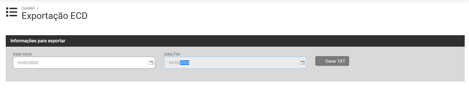 Exportação para ECD (Escrituração Contábil Digital)