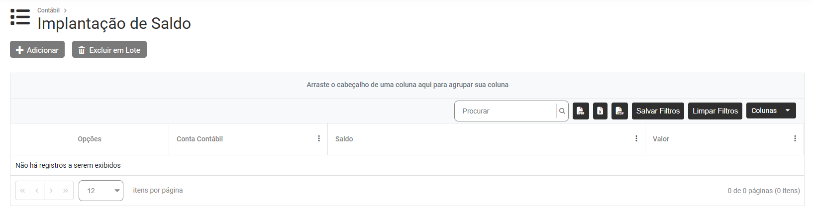 Implantação de Saldos