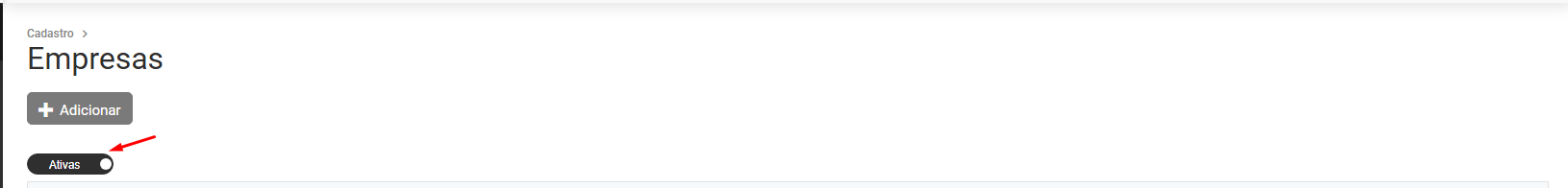 Para visualizar as Empresas inativa, clique no botão existente na parte superior da tela (ativas) e altere para Inativas
