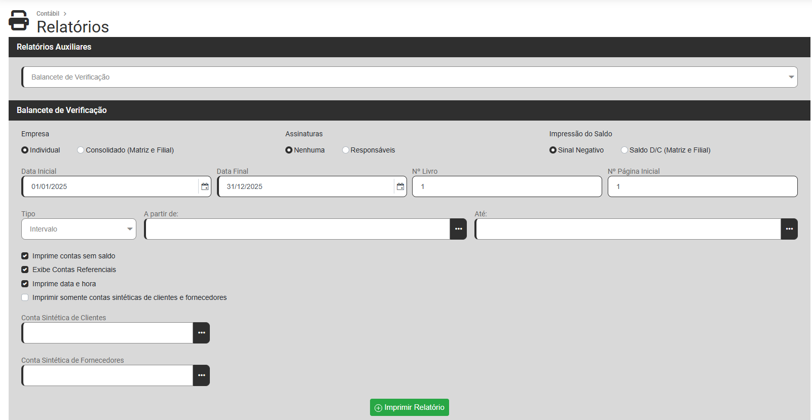 - Imprime somente contas sintéticas de clientes e fornecedores