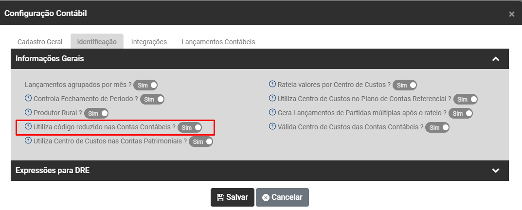 Para que você consiga definir a impressão do Código Reduzido nos Relatórios será necessário que na Configuração da Empresa você tenha informado SIM no campo Utiliza Código Reduzido nas Contas Contábeis