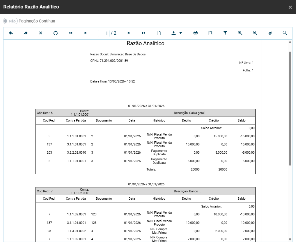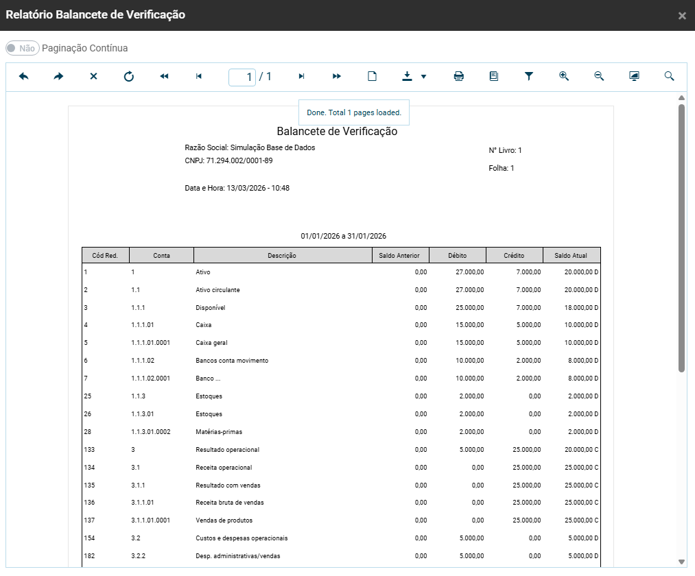 Ao clicar em Imprimir Relatório, o Balancete de Verificação será apresentado conforme a configuração realizada anteriormente