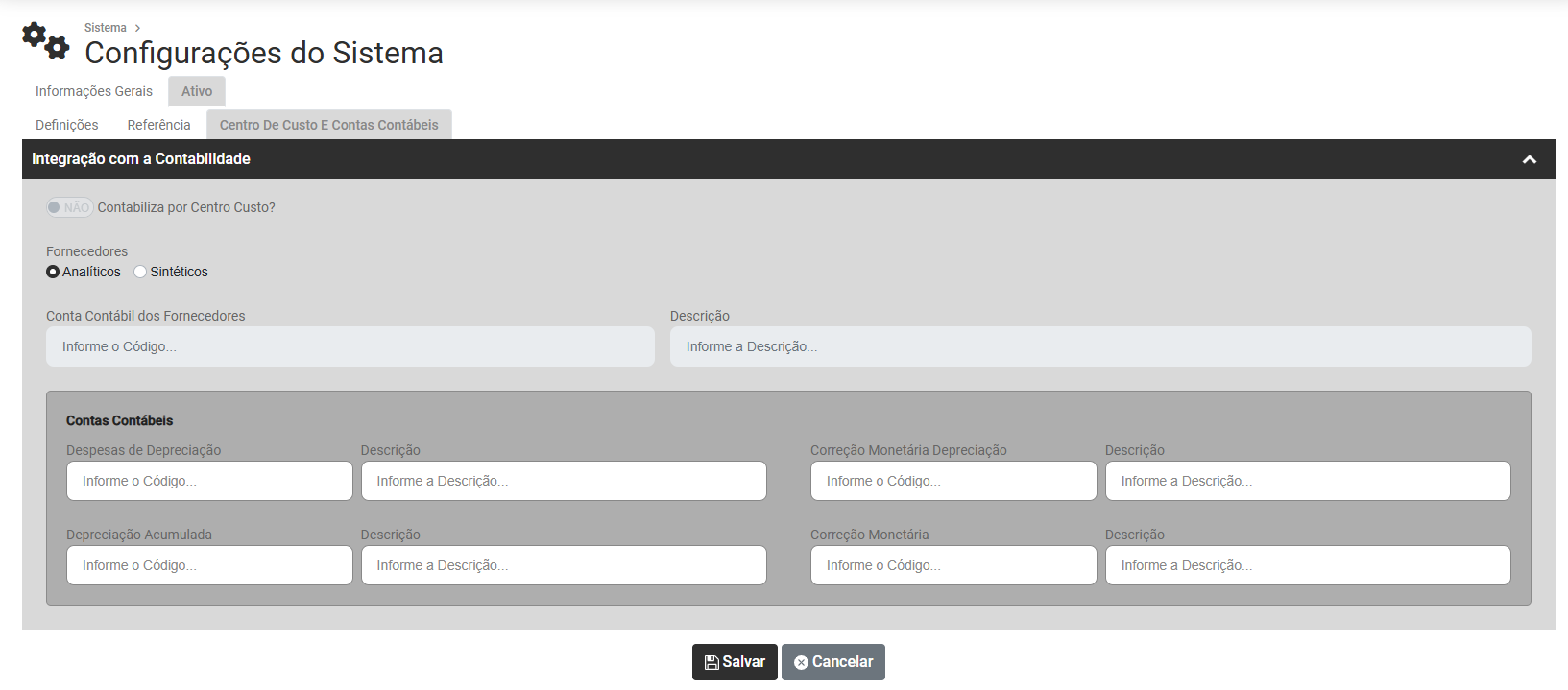 - Descrição - Será preenchido automaticamente no momento da definição da Conta Contábil