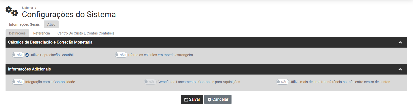 - Utiliza Depreciação Contábil - Ao ativar a Depreciação Contábil a Depreciação Fiscal ainda será mantida conforme a legislação