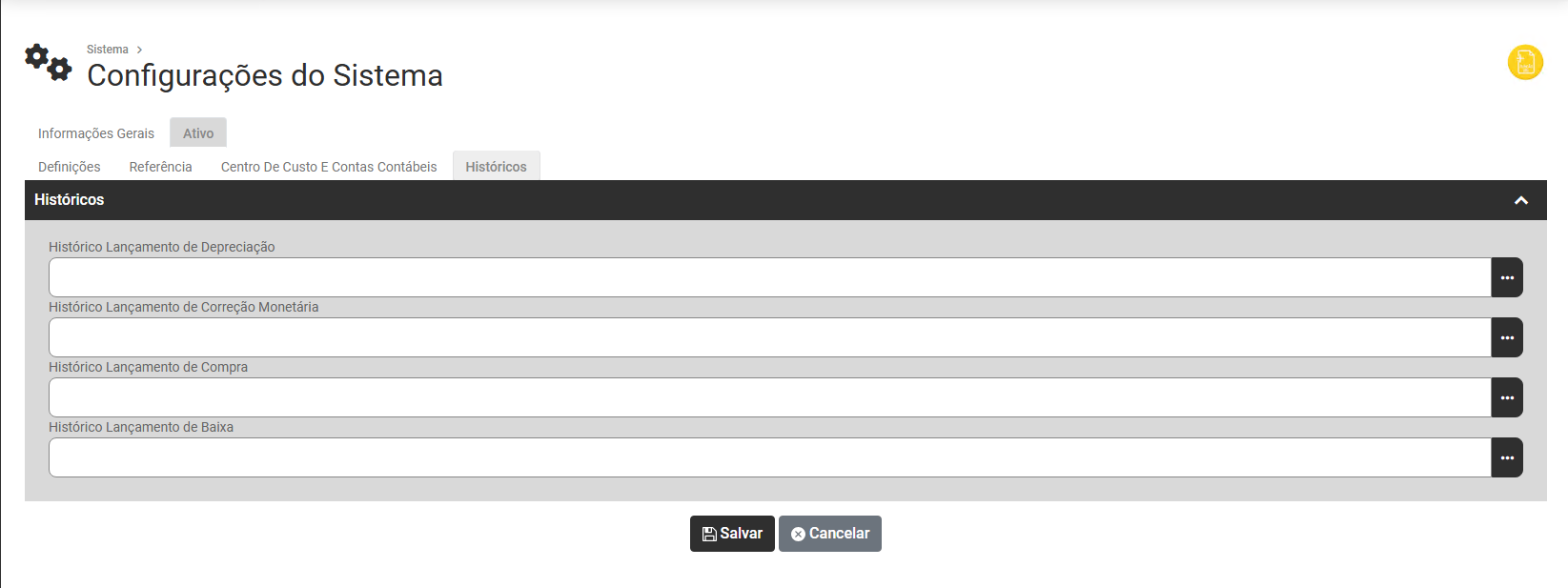 - Histórico para os Lançamentos de Compra (aquisições de bens)