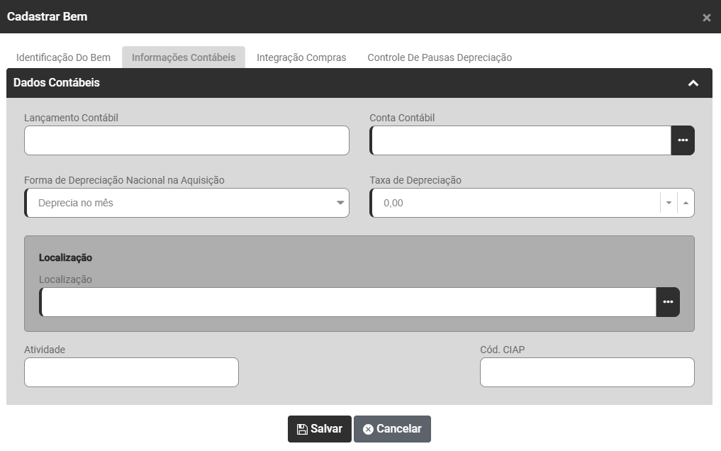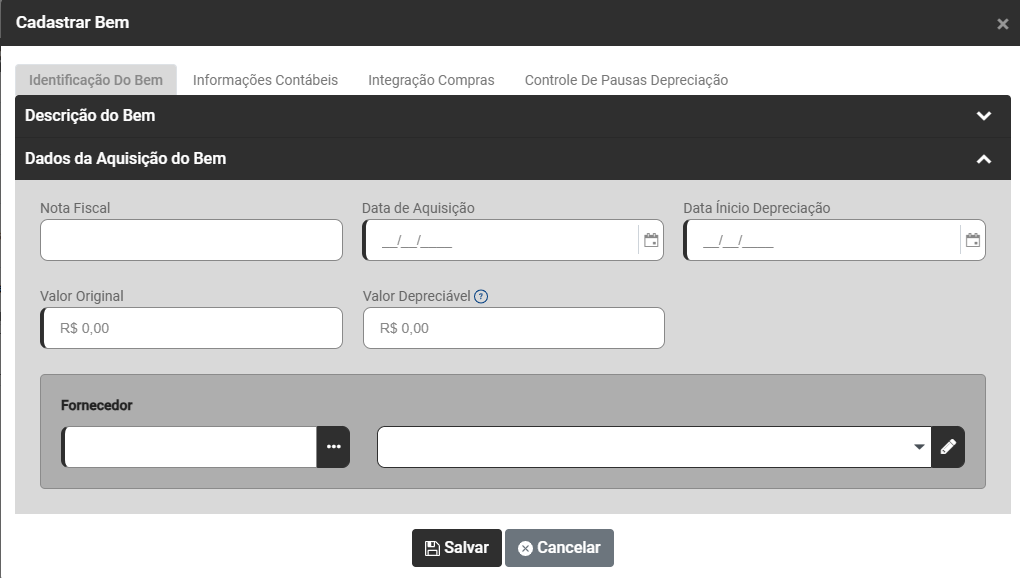 Na aba Identificação do Bem você encontrará dois campos