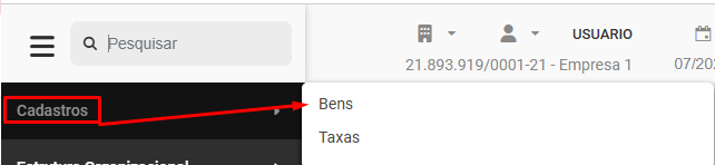 Para realizar o cadastro dos Bens da Empresa, acesse o menu Cadastros>Bens