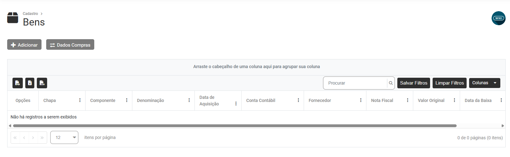 Cadastro de Bens e Importação do Sistema Compras