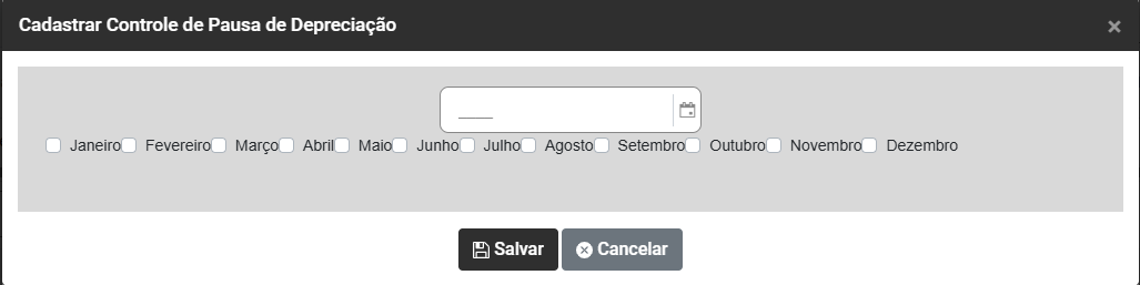 - Selecione o ano e os meses em que a depreciação não deverá ser calculada para esse bem