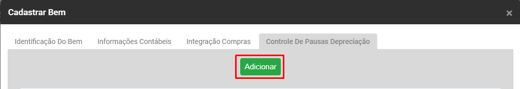Clique no botão Adicionar as informações referente as Pausas na Depreciação