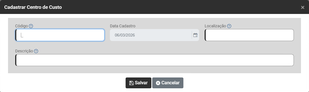 Cadastro de Centro de Custo