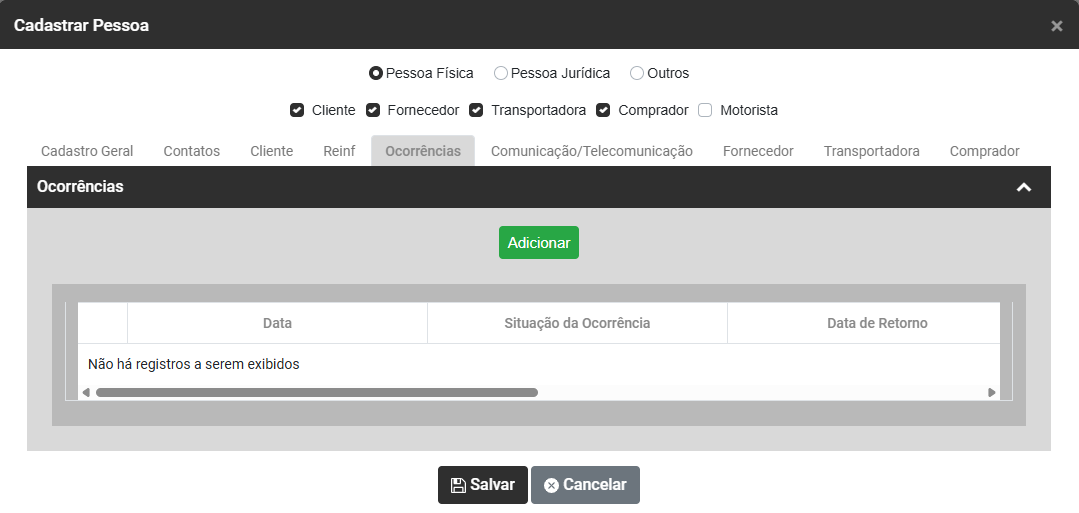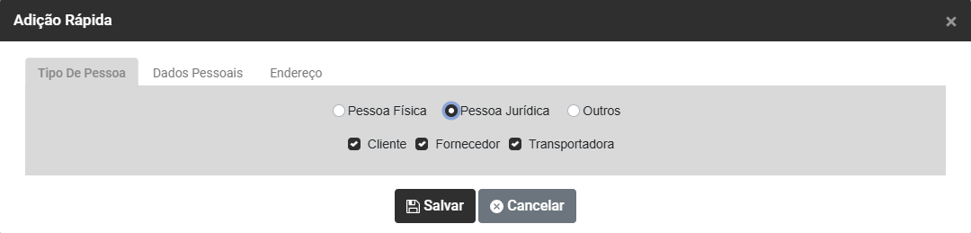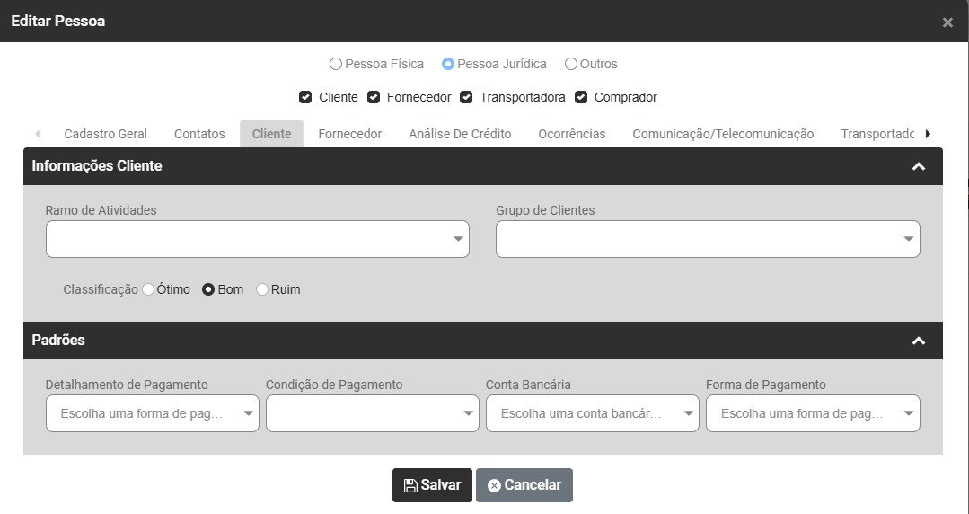 a.2) Cliente, Fornecedor, Transportadora, Comprador ou Motorista - Você conseguirá definir mais do que um tipo de Pessoa