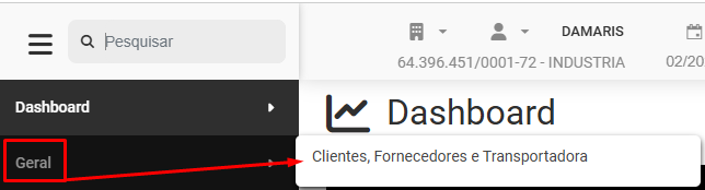 Para cadastrar os Clientes, Fornecedores e Transportadoras você deverá acessar o menu Geral>Clientes, Fornecedores e Transportadora