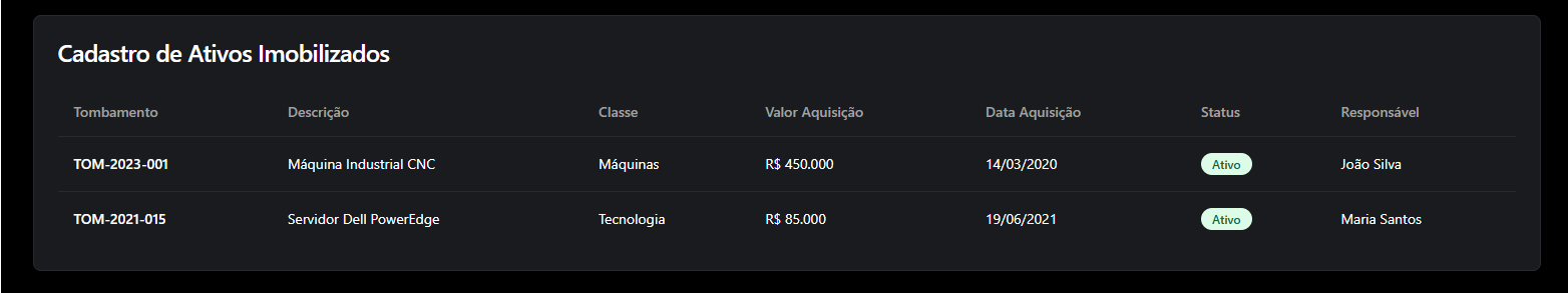 6) Cadastro de Ativos Imobilizados