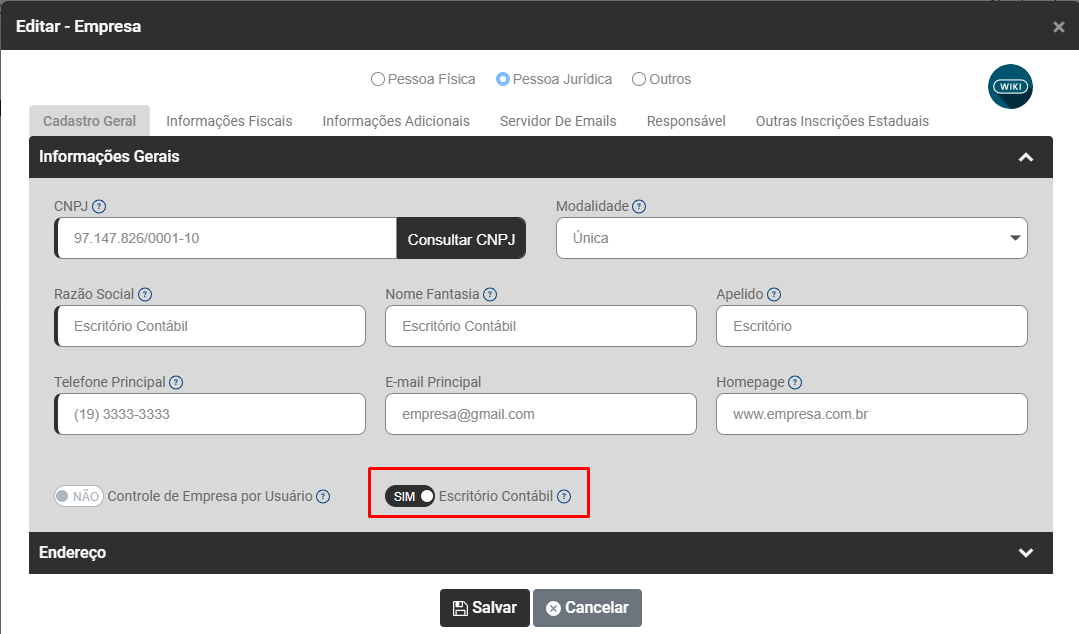 Cadastro da Empresa (Escritório Contábil)