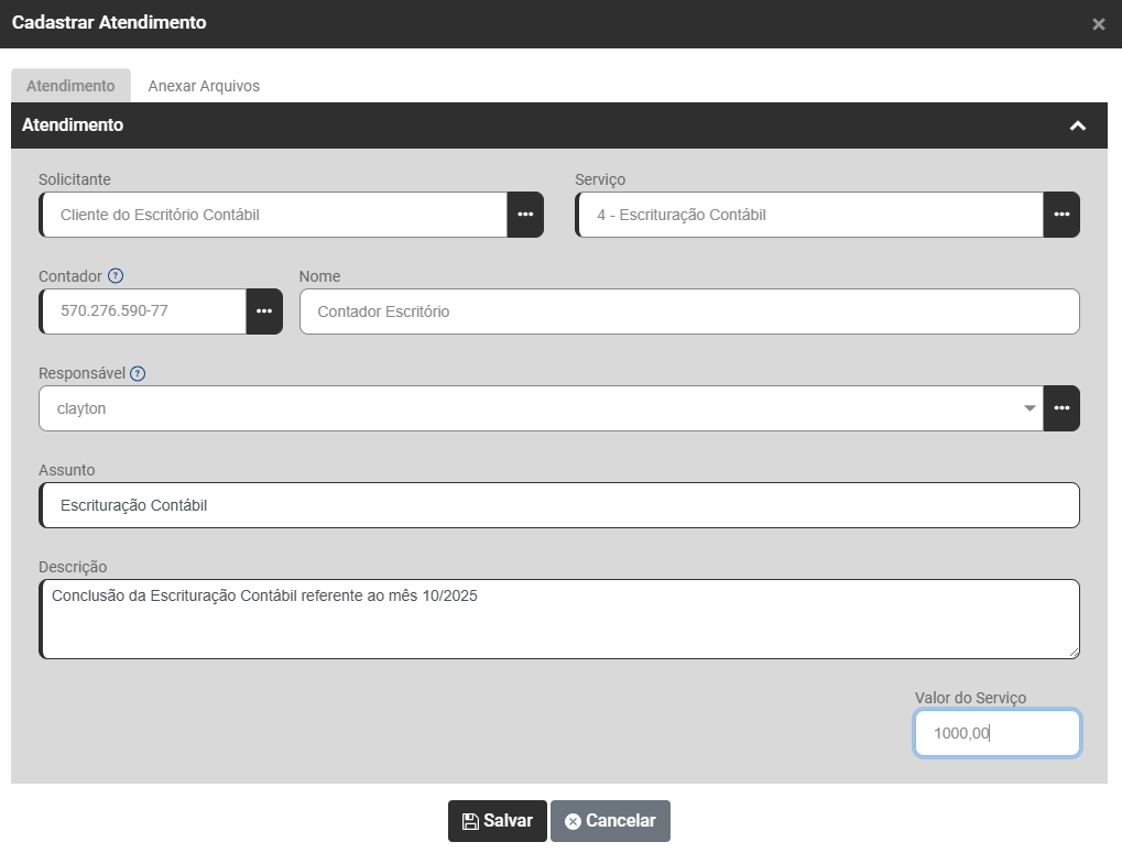 - Serviço - Serviço gerado para o Cliente do Escritório