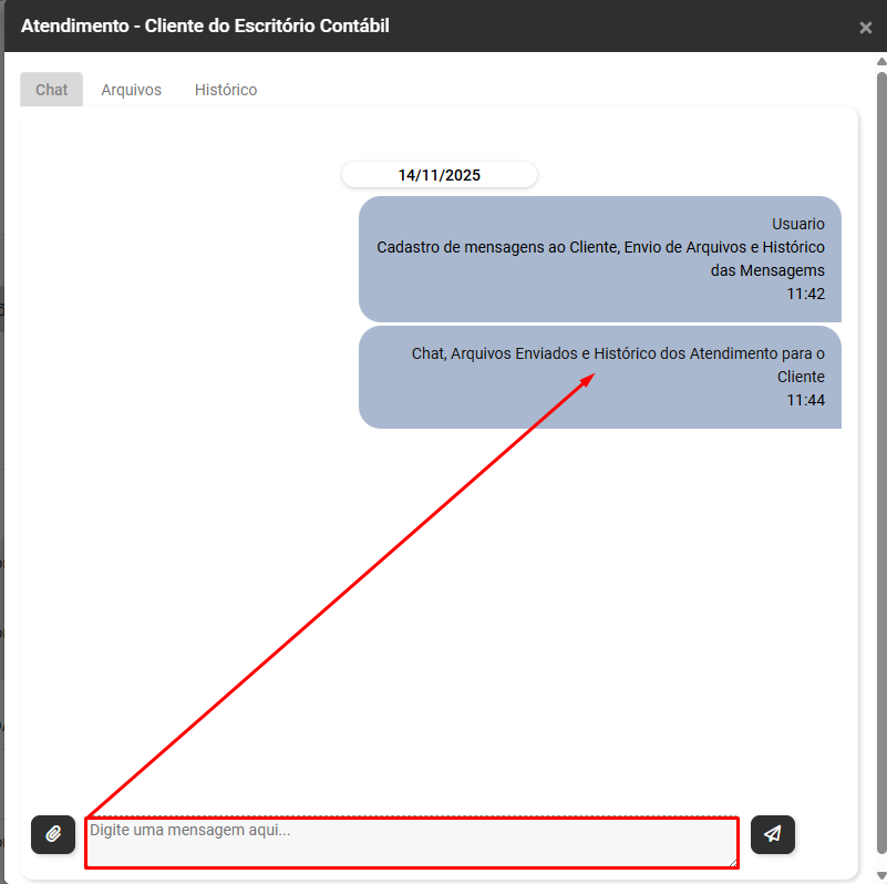 - Mensagem - Se você vinculou um usuário no cadastro de usuários para esse Cliente do Escritório Contábil, será possível que você envie mensagem para o mesmo.