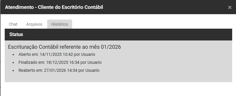 - Reabrir - Ao ser acessado o Sistema irá Reabrir o Atendimento, mudando seu Status para Reaberto