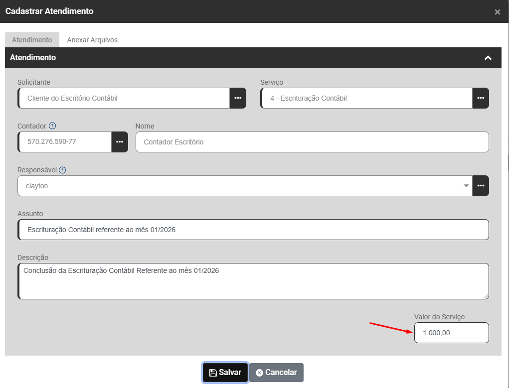 O CADASTRO DE ATENDIMENTO IRÁ GERAR TODOS OS ATENDIMENTOS PARA OS CLIENTES, INCLUSIVE A COBRANÇA DE DÉBITOS DOS MESMOS