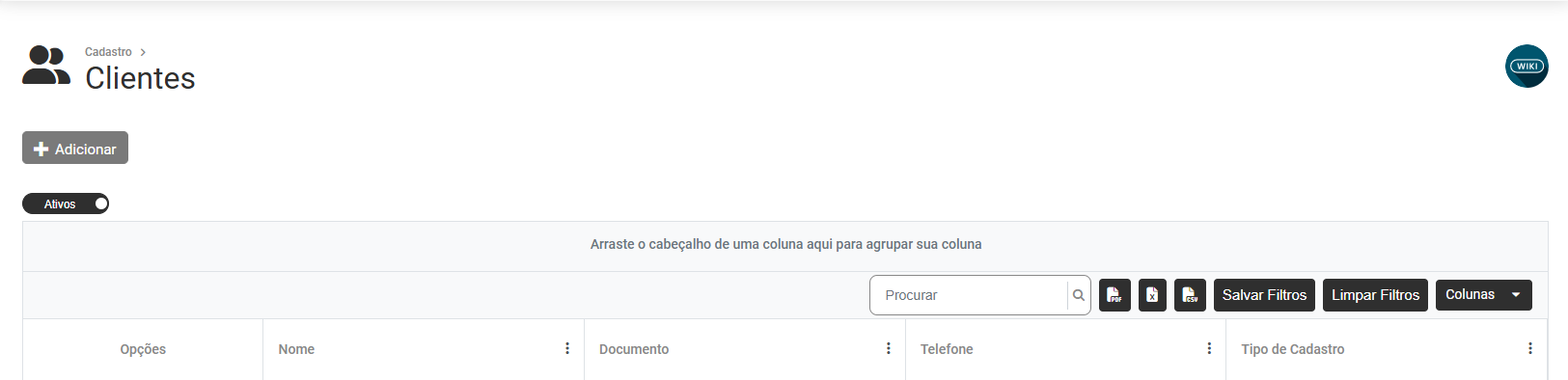 Cadastro de Clientes de todas as Empresas Cadastradas