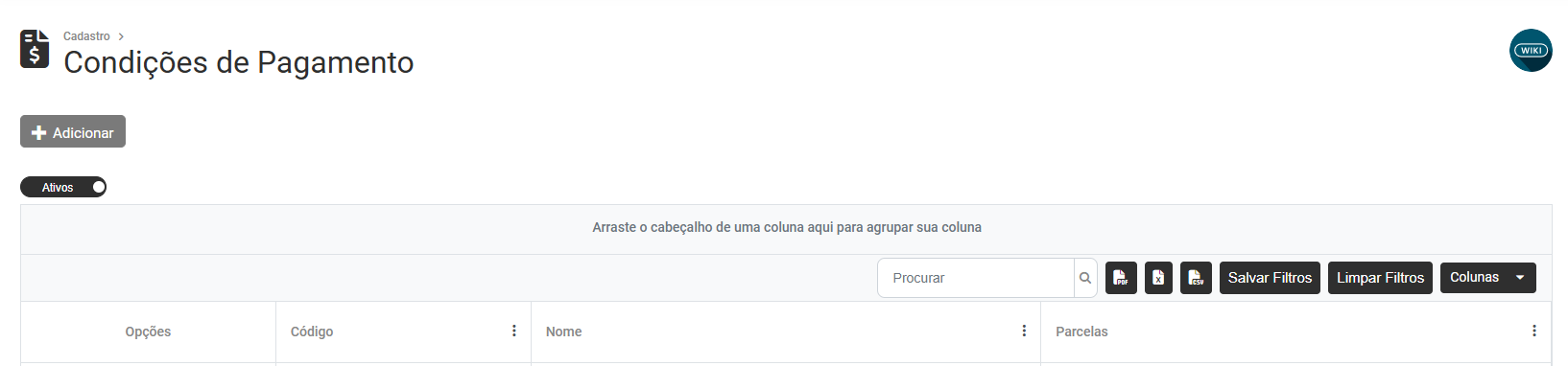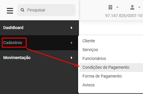 Para cadastraras as Condições de Pagamento, acesse o menu Cadastros>Condições de Pagamento