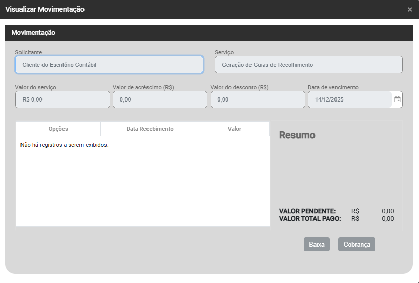 Ao clicar no botão Visualizar, o Sistema apresentará a visualização da Movimentação selecionada e a tela não poderá ser editada