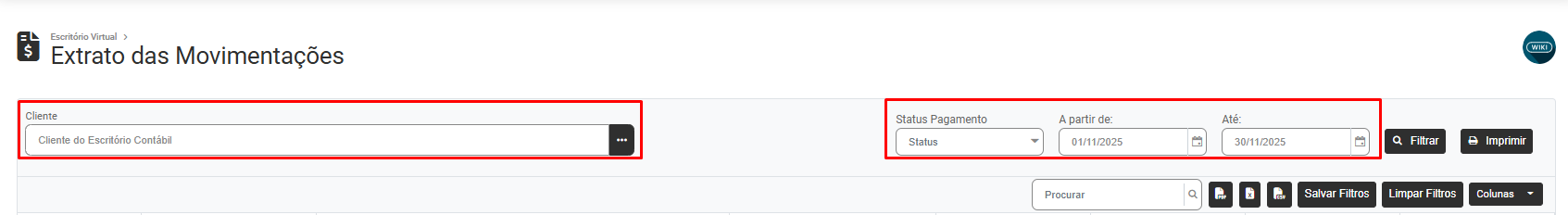 - Campo para definição do Cliente que você deseja visualizar as movimentações