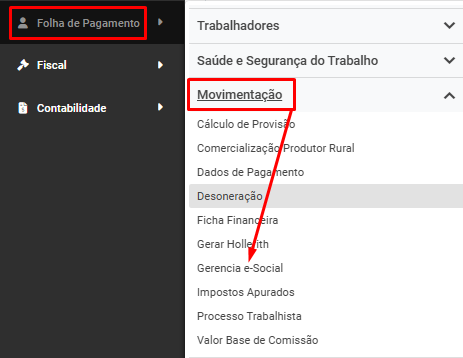 Em seguida acesse Folha de Pagamento>Movimentação>Gerencia eSocial