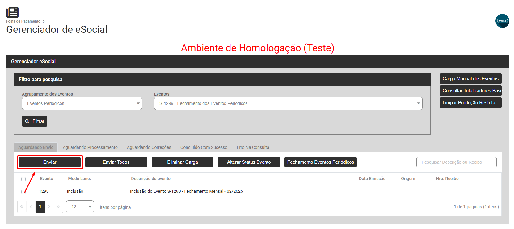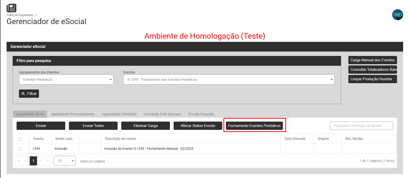Crie uma carga de fechamento, clicando no botão Fechamento de Eventos Periódicos
