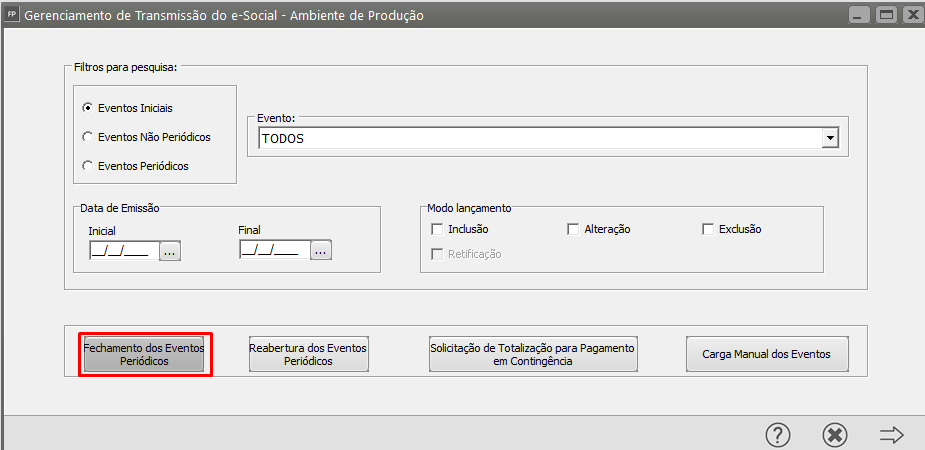 Correção: Acesse o Gerenciamento de Transmissão do eSocial e clique no botão Fechamento dos Eventos Periódicos