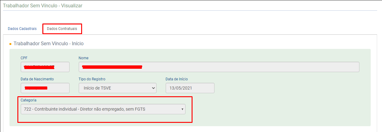 Descrição da categoria '___' registrada: Deve ser igual ao cadastro existente no funcionário no Ambiente Nacional do eSocial.
