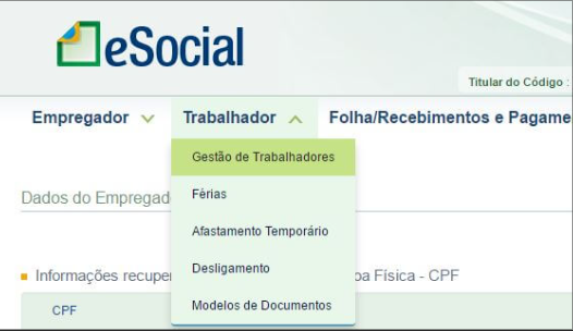 1) Se no Portal do eSocial, a Categoria do Sócio ou o número da Matrícula estiver errada será necessário enviar novamente a carga do evento S-2300 para correção da informação, para isso acesse o menu Folha de Pagamento>Movimentação>Gerencia eSocial