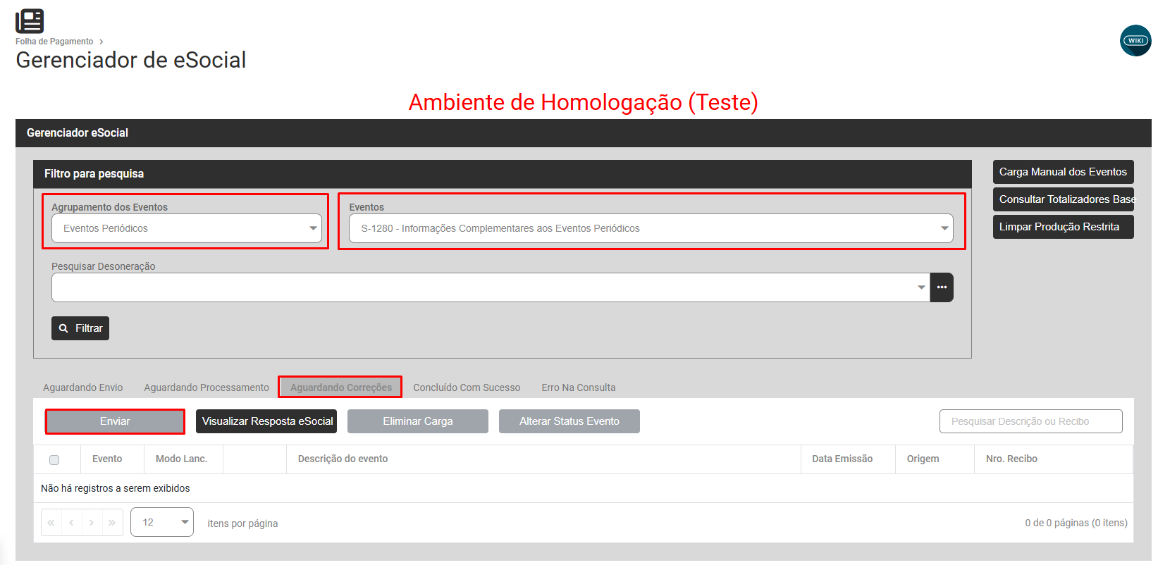 Depois de concluído o s1020, envie novamente o s1280 que está com a carga ‘Aguardando Correção’