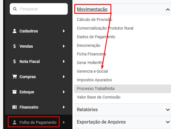 Em seguida acesse novamente Folha de Pagamento>Movimentação>Gerencia eSocial