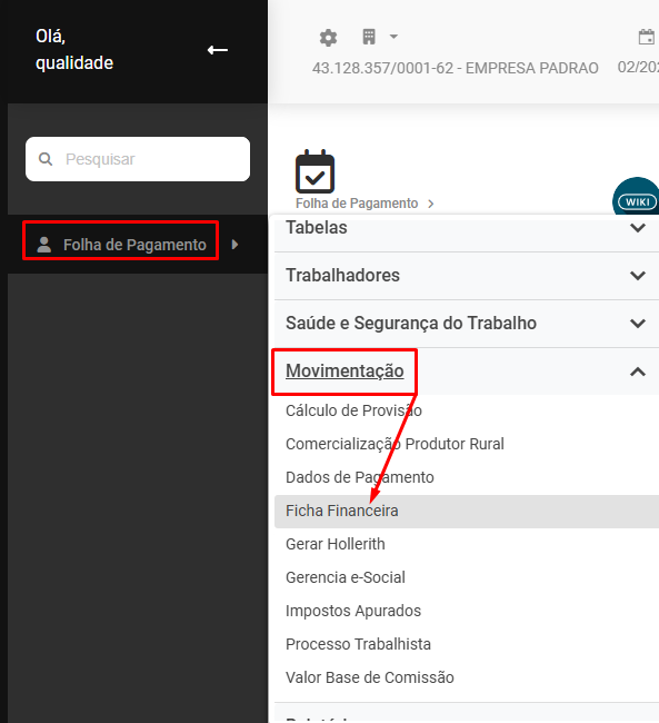 Correção: Acesse Folha de Pagamento>Movimentação>Ficha Financeira