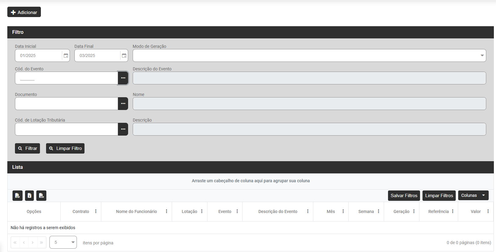 Ação sugerida: Verificar se existe algum evento de rubrica zerado.