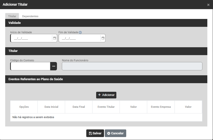 Correção: Acesse o menu Folha de Pagamento>Trabalhadores>Manutenção>Plano de Saúde