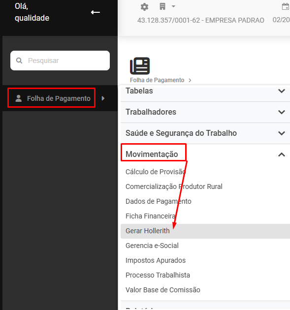 Correção: Acesse o menu Folha de Pagamento>Movimentação>Gerar Hollerith