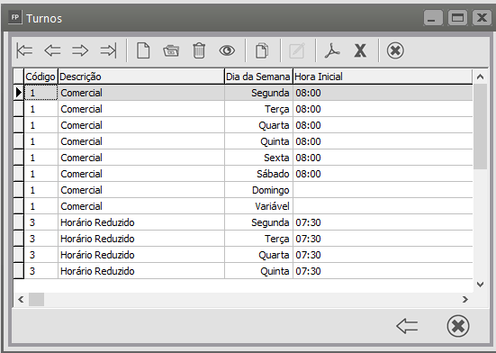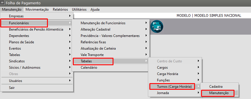 Correção: Acessar manutenção > funcionários > Tabelas > Turnos (carga horária) > Manutenção
