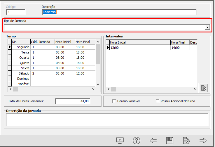 Preencher o tipo de Jornada: