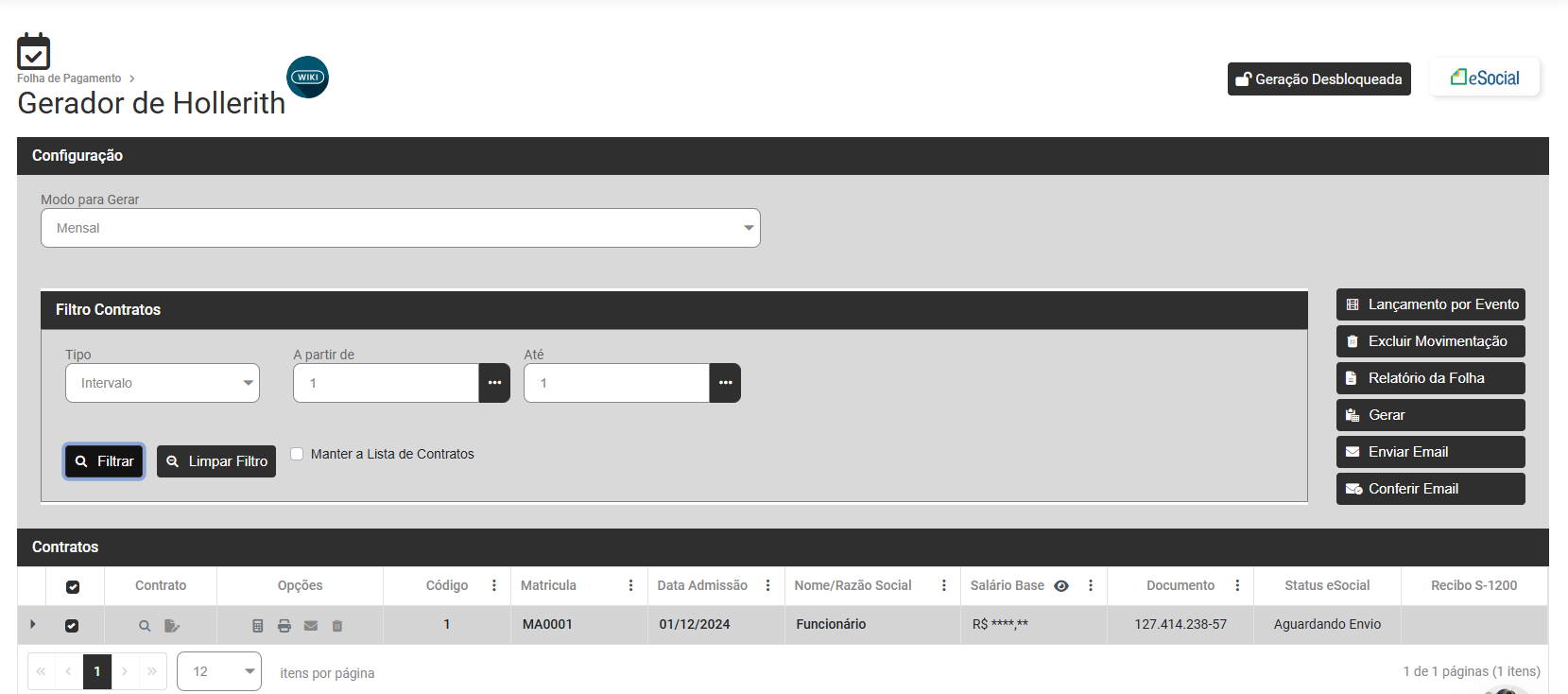 Após a conferência e correção de todos os eventos gerados no mês para o trabalhador que apresentou a rejeição acesse novamente Folha de Pagamento>Movimentação>Gerencia eSocial